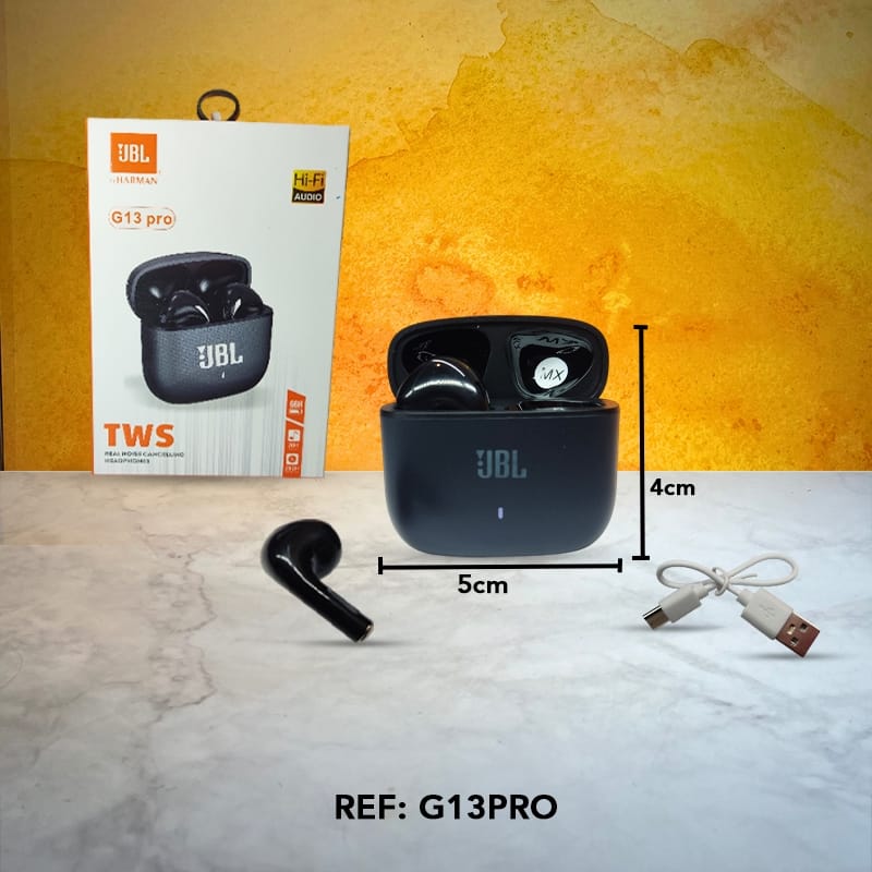 Los Audífonos Inalámbricos JBL G13PRO son tu opción ideal para disfrutar música con estilo, comodidad y un audio nítido tipo Hi-Fi.