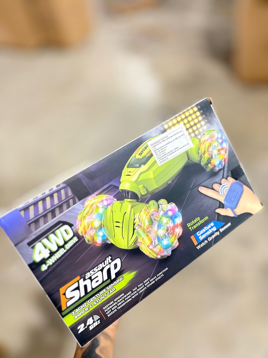 Se trata de un coche de acrobacias teledirigido (RC) con detección de gestos, marca "assault Sharp". Sus características clave incluyen: