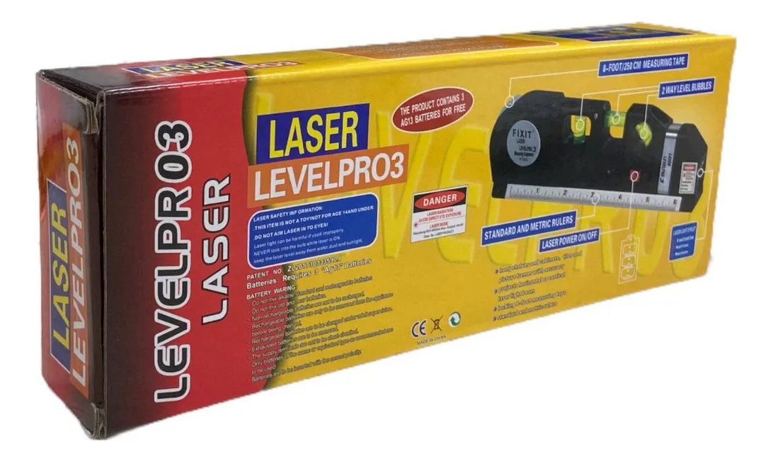 Este Metro Nivel Láser es de alta calidad y cuenta con una cinta de medición Vertical Horizon de nivel láser 8FT Aligner. Es perfecto para colgar estantes y armarios, azulejos y marcos de fotos con precisión. Puede emitir un haz de luz láser horizontal o vertical y tiene una cinta métrica de bloqueo de 8 pies. Incluye reglas estándar y métricas, lo que lo hace ideal para cualquier trabajo que requiera una línea recta o una medición precisa. Este nivel láser multiusos es útil para colgar imágenes, instalar estanterías, colocar suelos, colgar papel tapiz y más. La luz láser tiene un interruptor de encendido/apagado. La salida máxima del láser es de menos de 0,5 mW y se alimenta con 3 pilas de botón AG13. Es importante mantener el nivel del láser alejado del agua, el polvo y la luz solar. Especificaciones: Longitud de onda: 650nm Potencia de salida: 5mW Tamaño: 18,5 (largo) x 6,2 (ancho) x 2,8 (alto) cm Tamaño del embalaje: 210*80*40mm Color: Negro