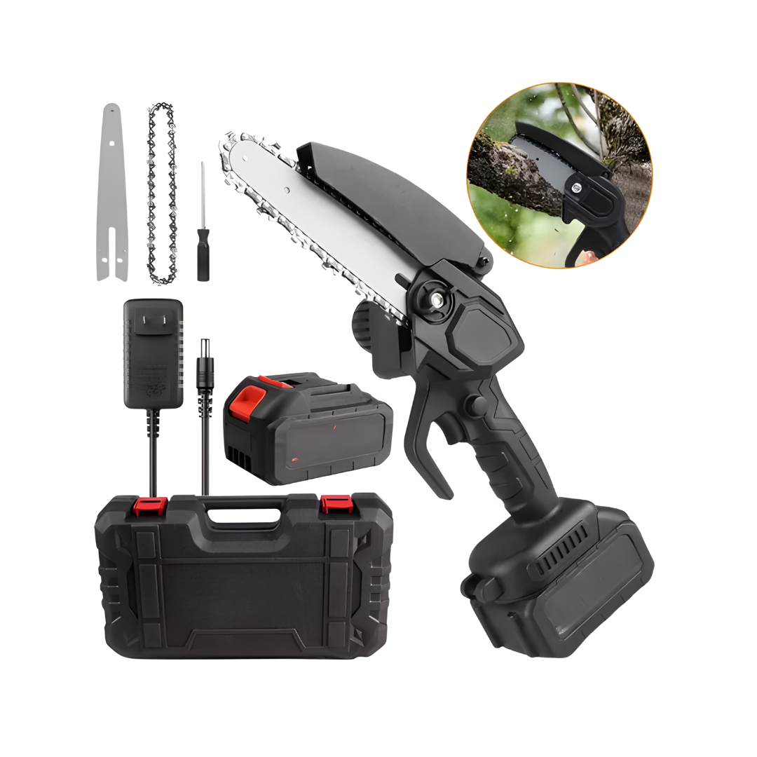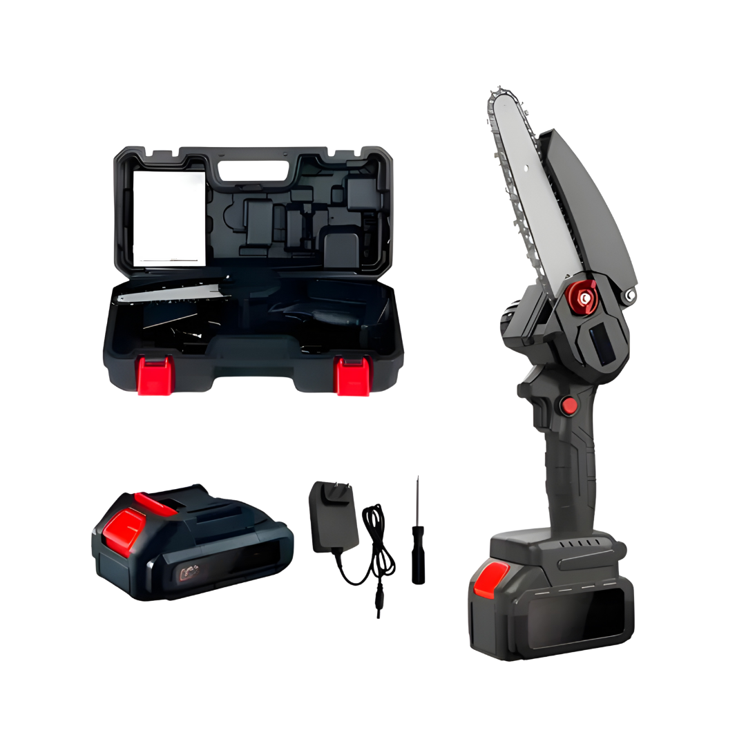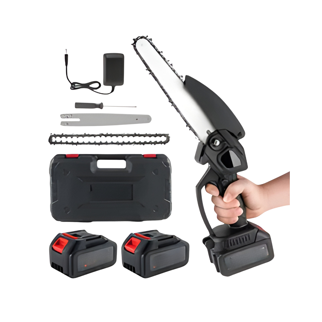 La mini motosierra eléctrica inalámbrica de 48V es una herramienta potente, compacta y versátil, ideal para cortes precisos en madera, ramas y troncos pequeños. Diseñada con tecnología de litio de alta eficiencia, esta motosierra te permite trabajar sin interrupciones ni cables, brindando libertad de movimiento y un rendimiento constante. Su tamaño ergonómico facilita el manejo con una sola mano, disminuyendo la fatiga y aumentando la precisión. Incluye dos baterías recargables, una cadena de repuesto, un cargador rápido y una práctica maleta de almacenamiento que facilita su transporte y resguardo. Es la solución perfecta tanto para tareas domésticas como para trabajos de jardinería más exigentes. Fabricada con materiales resistentes y duraderos, esta herramienta está pensada para ofrecer seguridad, potencia y eficiencia en cada uso.