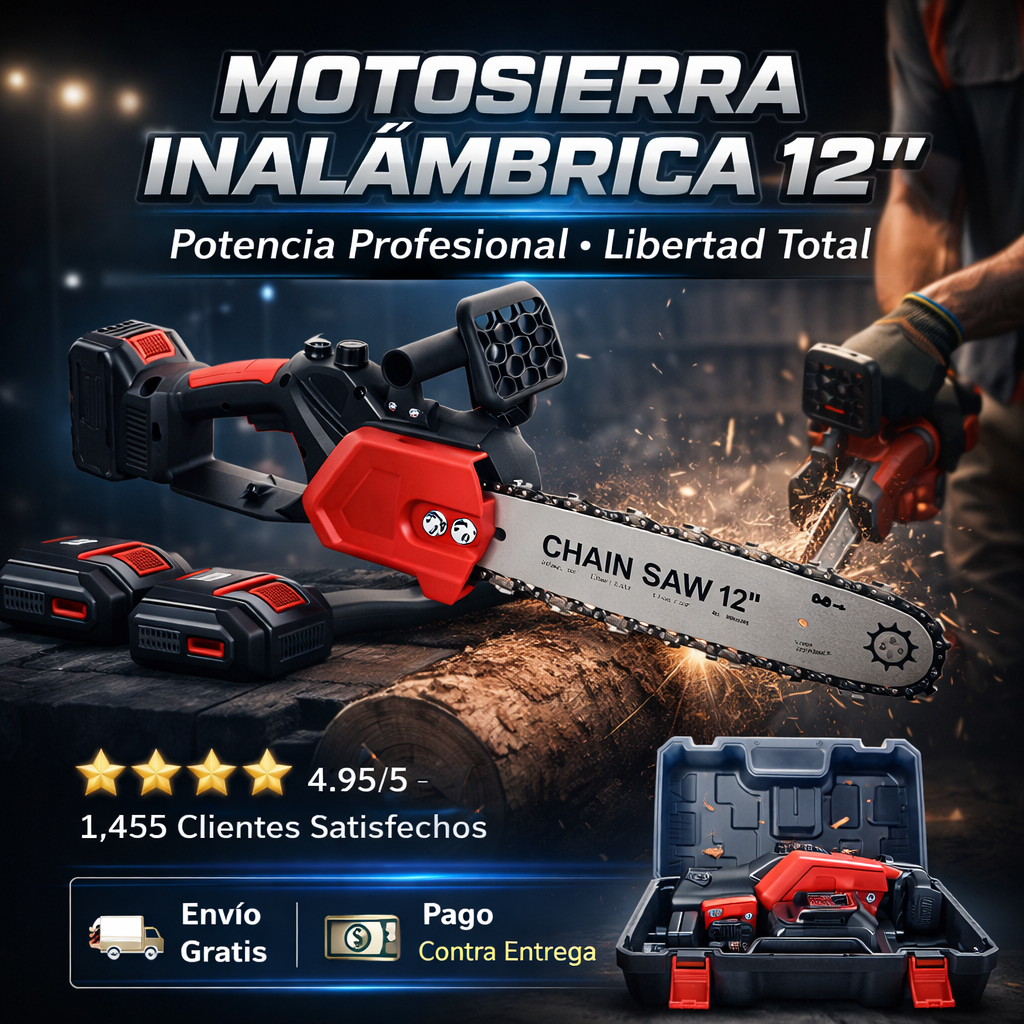 Motosierra Electrica Portatil Recargable 12 Pulgadas Maletin Cadena