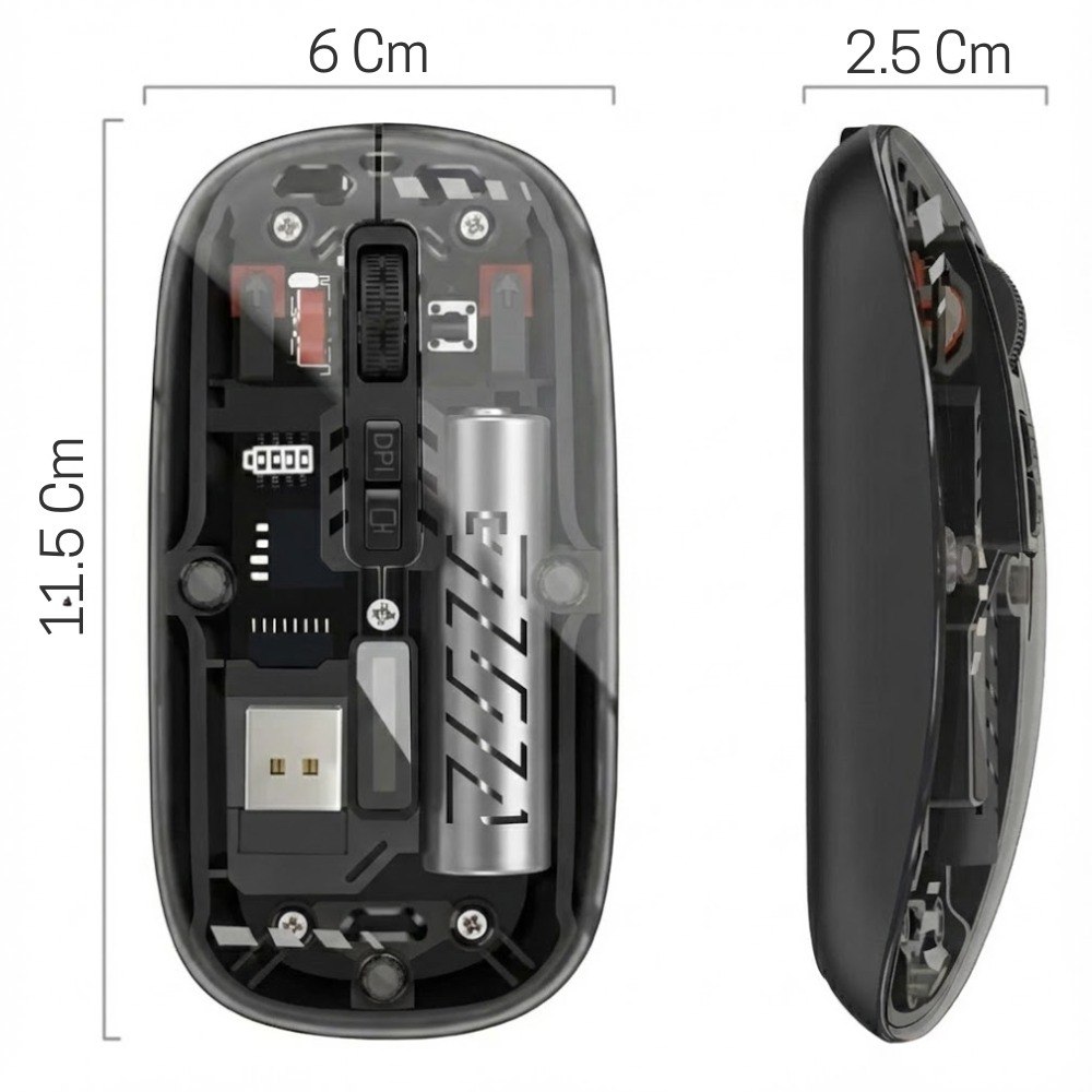 Mouse Inalambrico 2 En 1 Bluetooth Y Receptor Recargable Transparente Ms-50