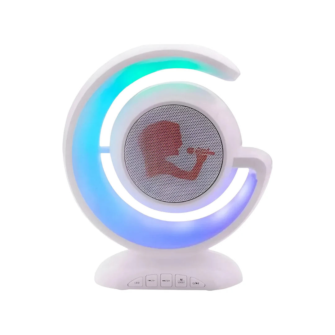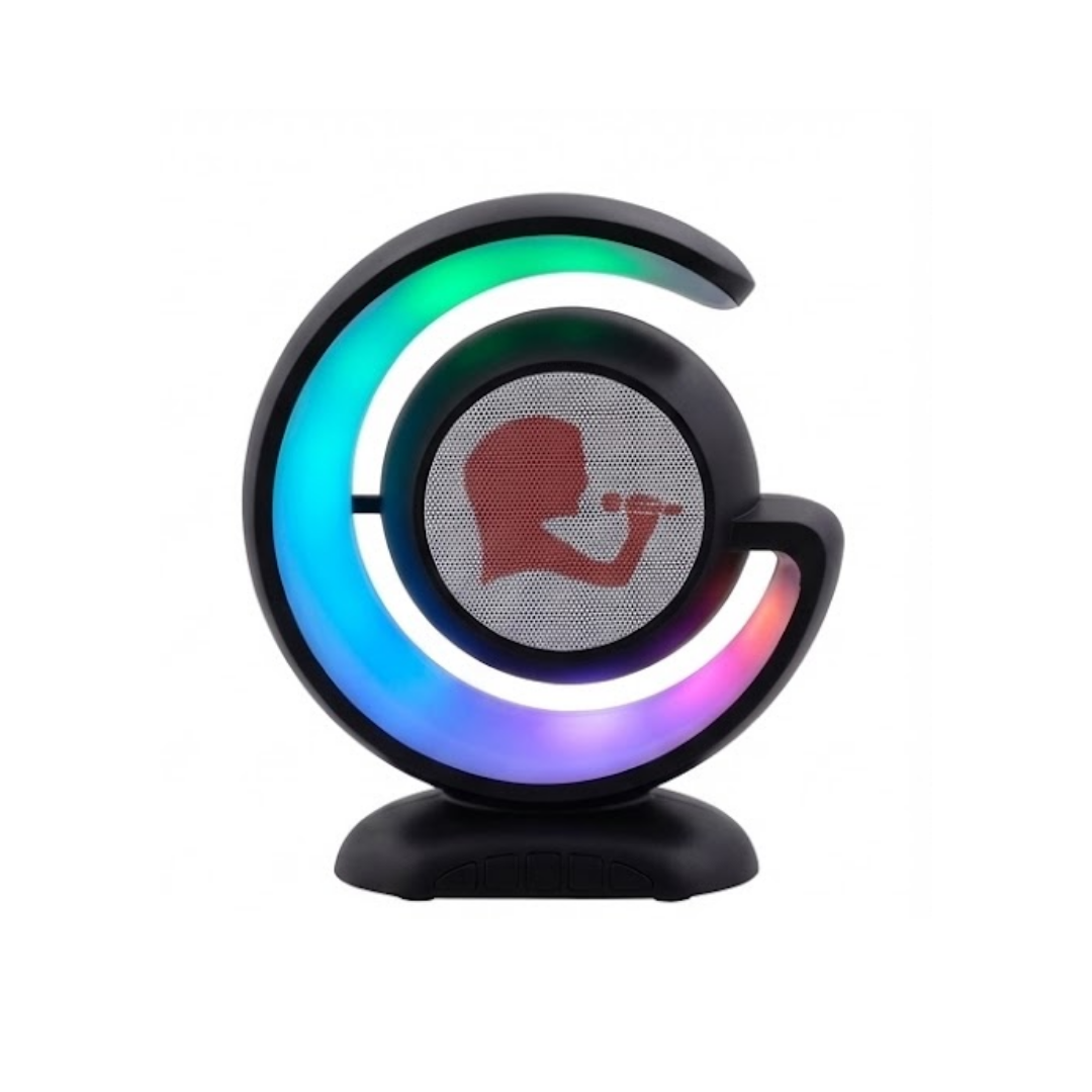 Este parlante integra reproducción de sonido junto a iluminación visible, pensado para actividades recreativas en espacios interiores. Permite emitir audio mientras la luz LED permanece activa durante el funcionamiento, generando un ambiente visual y sonoro adecuado para reuniones y momentos de entretenimiento.