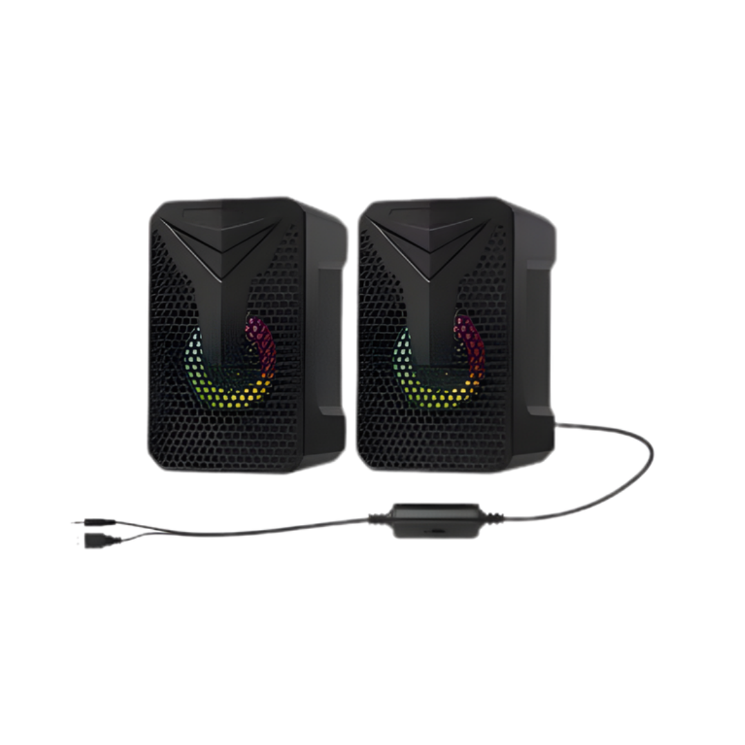 Este conjunto de parlantes compactos esta pensado para reproducir sonido en espacios interiores sobre escritorios. La doble unidad permite una distribución equilibrada del audio.